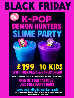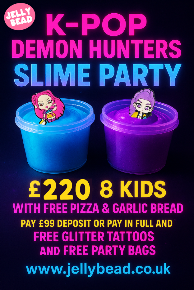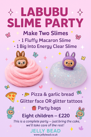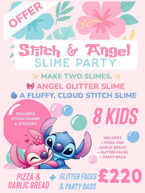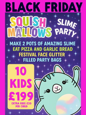 β¨ Slime Parties β Make, mix, and stretch your own pots of magical slime with glitter, charms, scents, and colours galore.