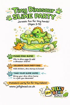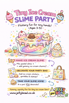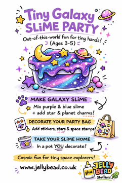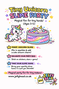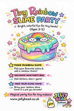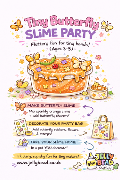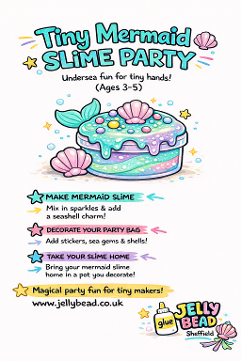 Tiny Slime Parties are little pockets of magic designed especially for younger children — one perfect slime, gentle sensory fun, and lots of smiles in our colourful Jelly Bead studio. Simple, sweet and full of sparkle, they’re the perfect first party adventure for little makers.
